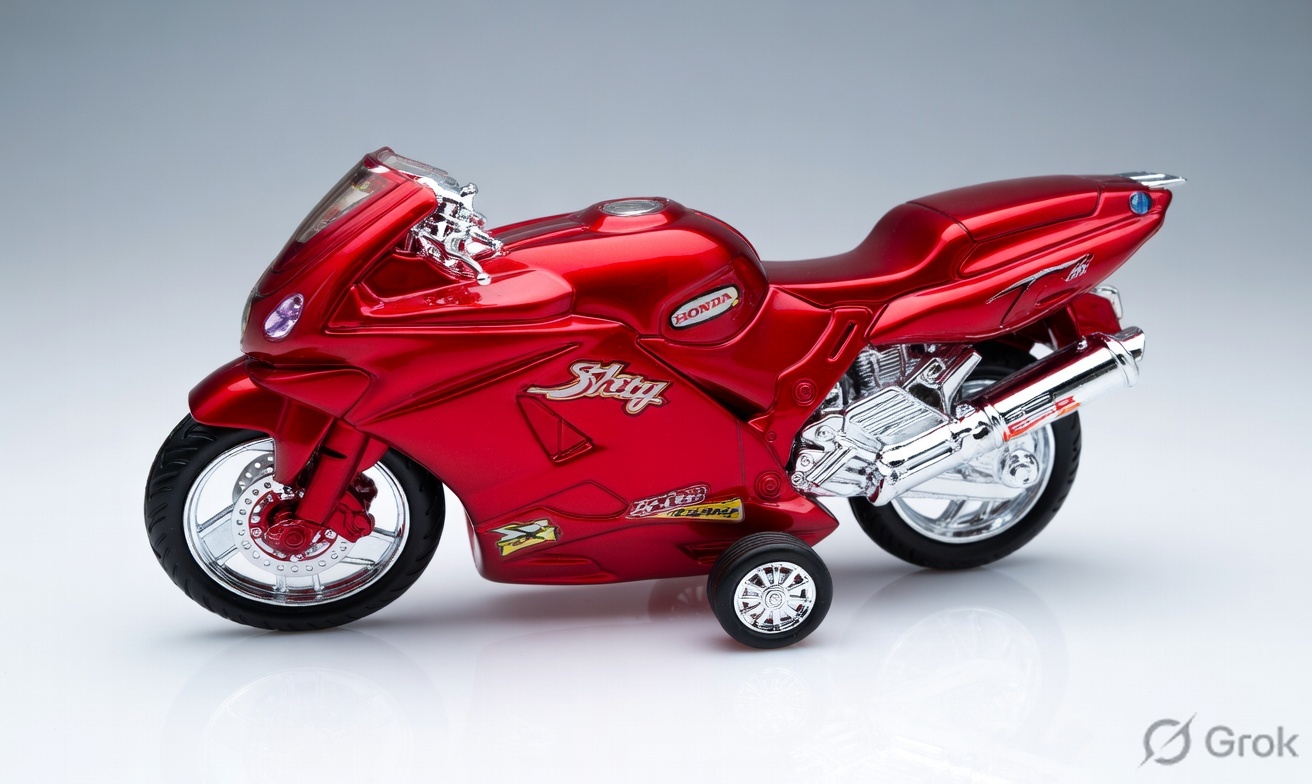 A classic pull-along motorcycle designed for little riders. This bright red Suta Bike features realistic detailing, sturdy wheels, and smooth rolling action. Perfect for developing motor skills and imaginative play. Durable plastic construction ensures long-lasting fun.