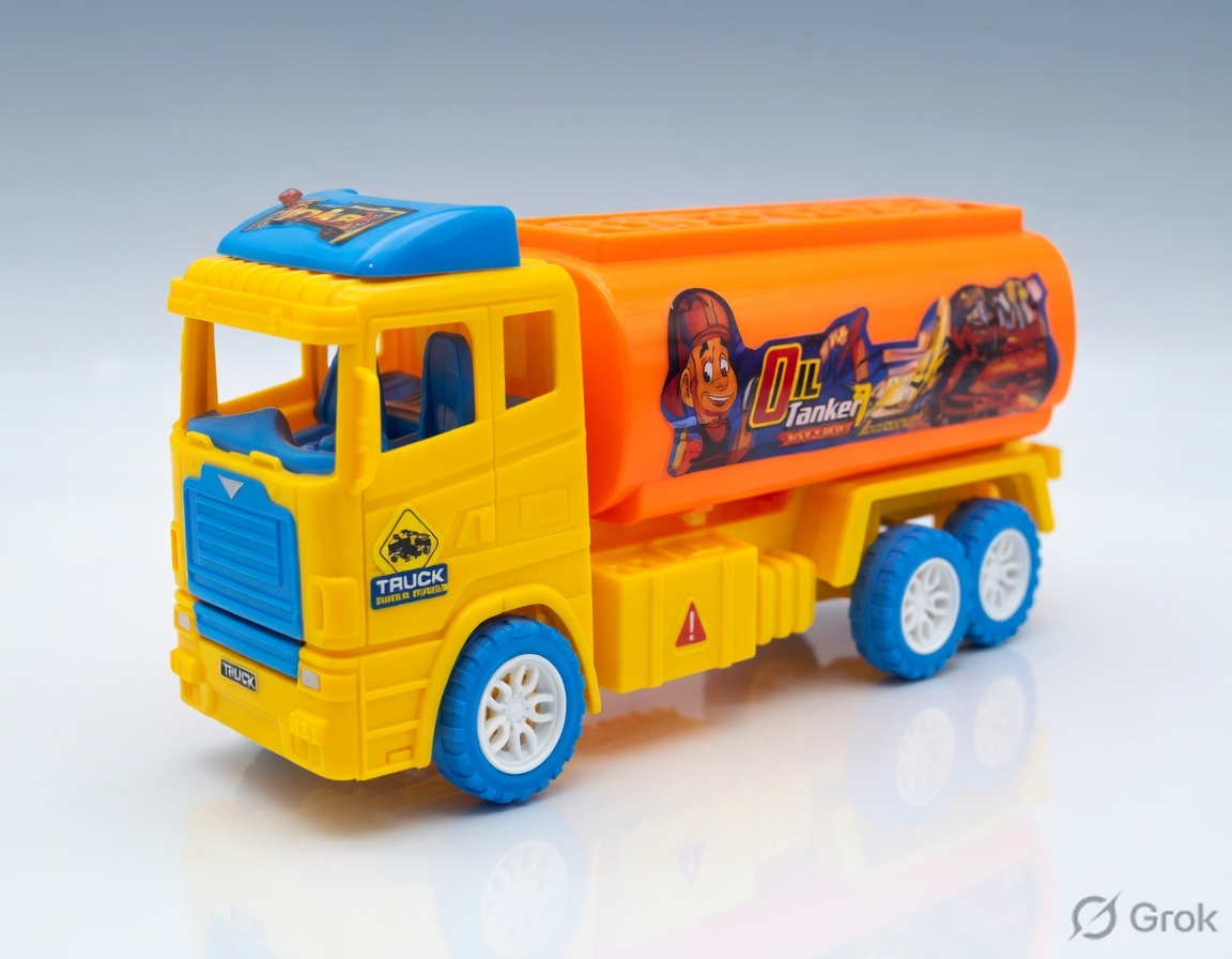 Bring the excitement of heavy-duty transport to playtime with the 914-A-OIL TANKER! This realistic oil tanker truck features a bright yellow cab and a vibrant orange tanker body with detailed graphics and authentic tanker styling. The sturdy build, smooth-rolling blue wheels, and premium PVC pouch packaging make it perfect for wholesale and retail display.